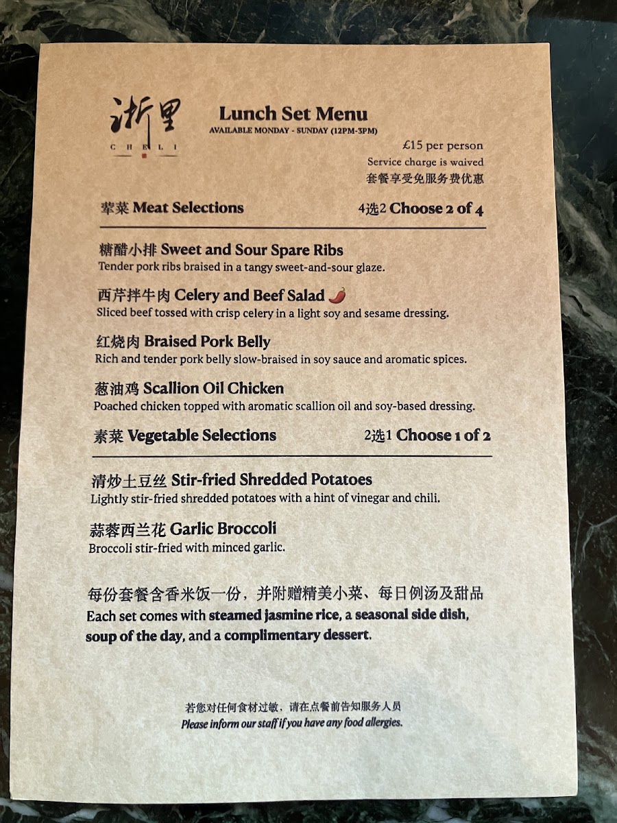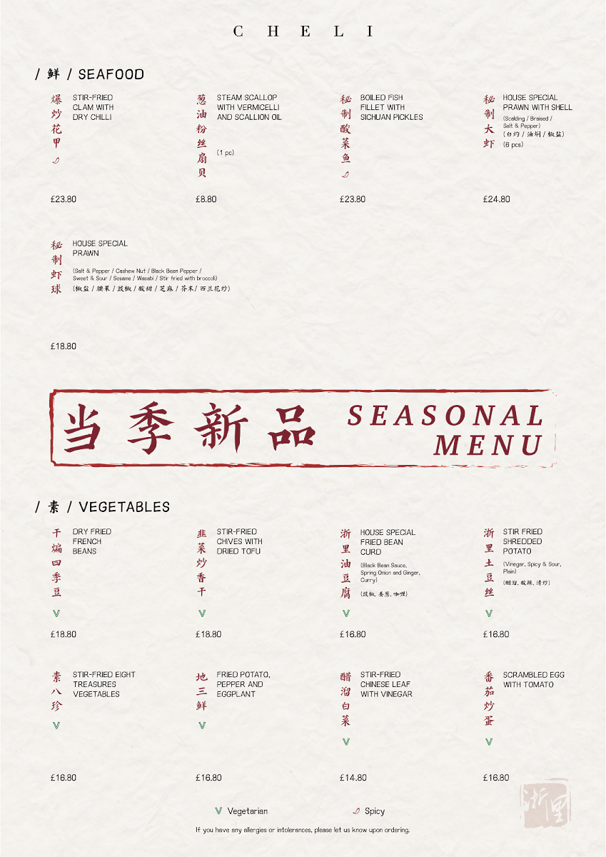 Cheli offers a menu that thoughtfully balances traditional Zhejiang cuisine with approachable, modern touches. The selection is ideal for those seeking comforting and refined dishes, whether enjoyed as a relaxed lunch or a leisurely evening meal. Guests will find a variety of dim sum, seasonal vegetables, and hearty soups that reflect the region’s flavors without overwhelming the palate.